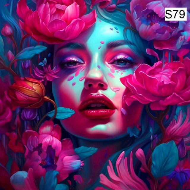 Panneau Femme Fleurs en Polyester - 30x30cm