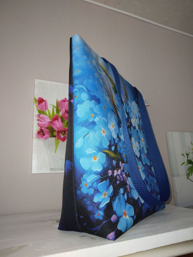 Sac cabas en polyester imperméable fleuri des 2 côtés - Dimensions : 38x38x10cm. Fermeture éclair.